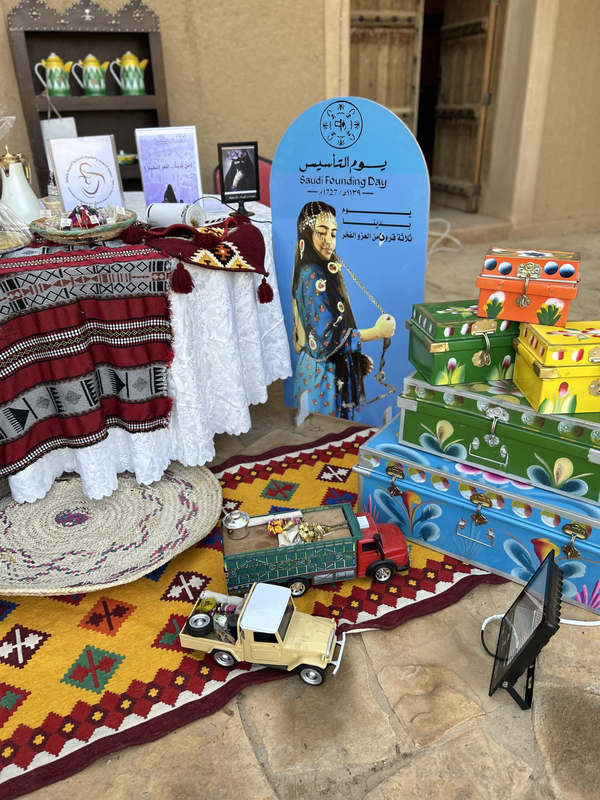 - تم اعداد ركن تعريفي للجمعية بالديكورات الشعبية من صالة عذو ق التراثية